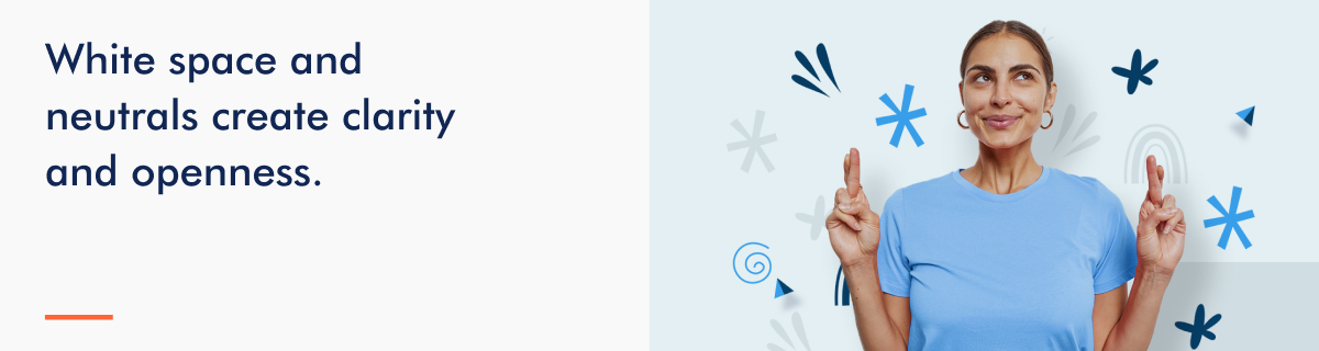 White provides a clean and open feel. It gives users space to focus without distractions. Use white backgrounds to highlight content and create an uncluttered experience. White is also a perfect base for pairing with calming accent colors like blue or green.