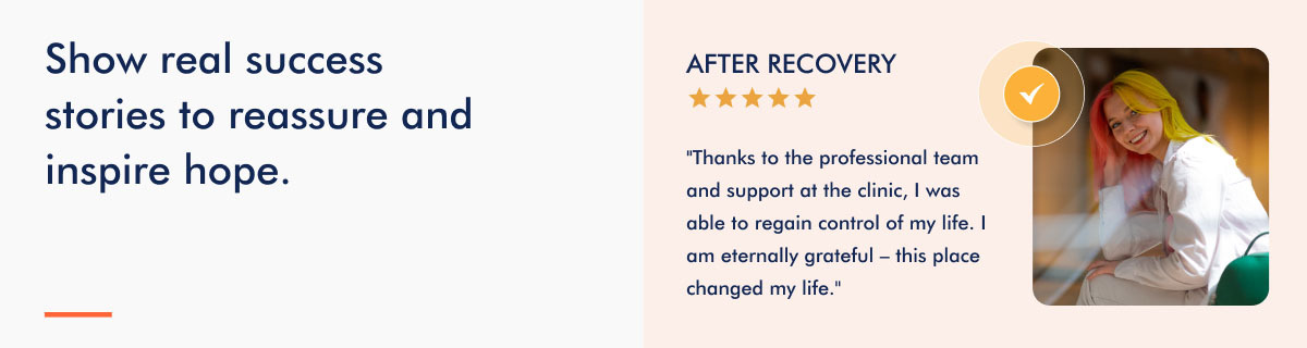 Success stories and testimonials build confidence. People want to know that others in similar situations have found help and recovery at your facility. Use real patient experiences (with permission) to show the effectiveness of your programs. Videos and written testimonials can provide the reassurance they need to take the next step.